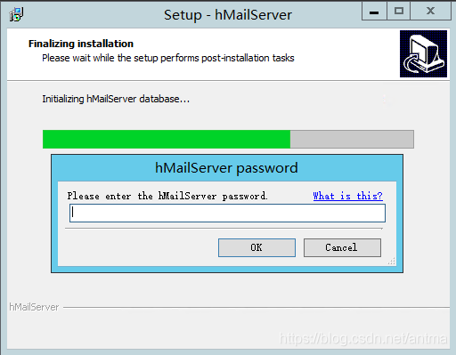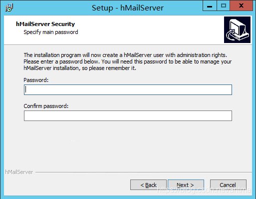 重启操作系统后重新打开hMailServer安装文件,继续安装,输入管理密码: