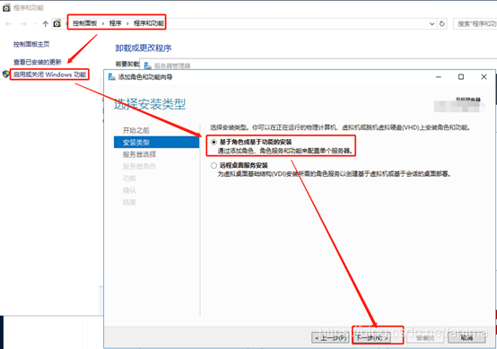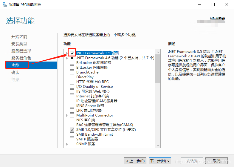 在“添加角色和功能”的“功能”选项卡处,勾选“.NET Framework 3.5功能”“: