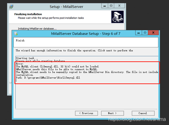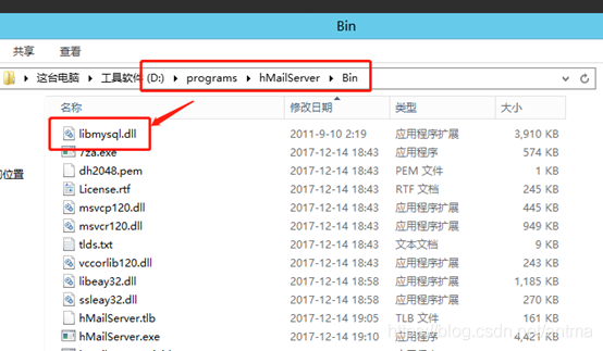 将相应库的dll文件放入hMailServer安装目录下的Bin目录下面: