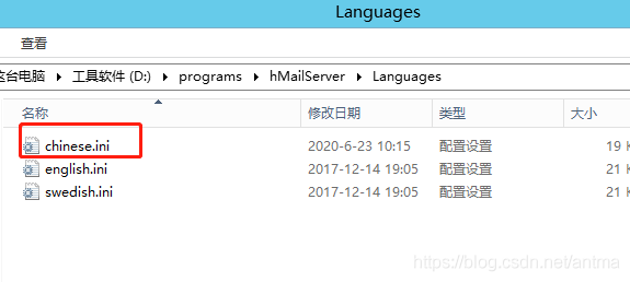 把chinese.ini文件复制到hMailServer安装目录下Languages下: