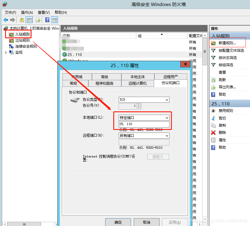 如果服务器开启了防火墙,需打开 25和110端口: