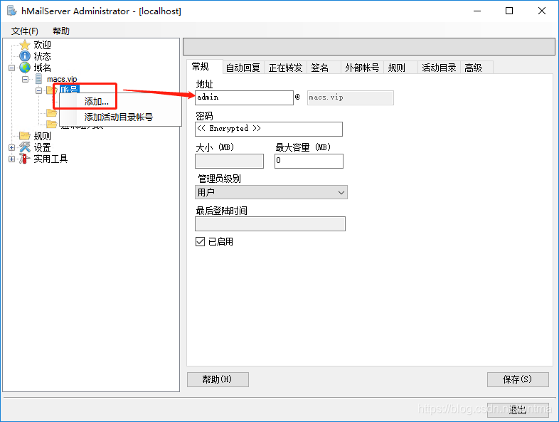 即成功添加了 admin@macs.vip 的邮箱帐号。