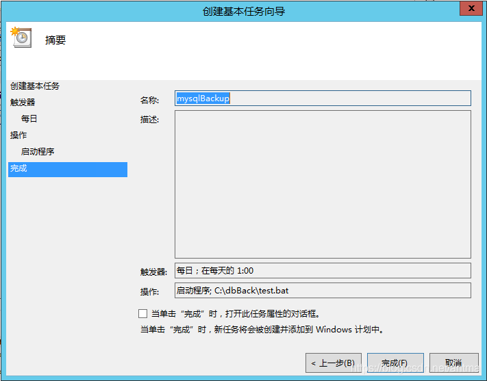 通过以上设置,即可在设置的触发时间自动运行备份脚本,达到定时自动备份的目的。