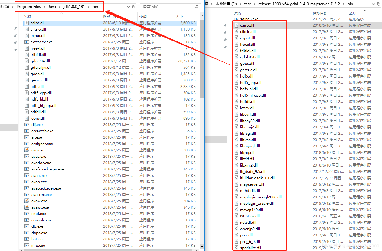 2、将解压后 bin文件夹下所有 dll文件拷贝到jdk的bin目录下: