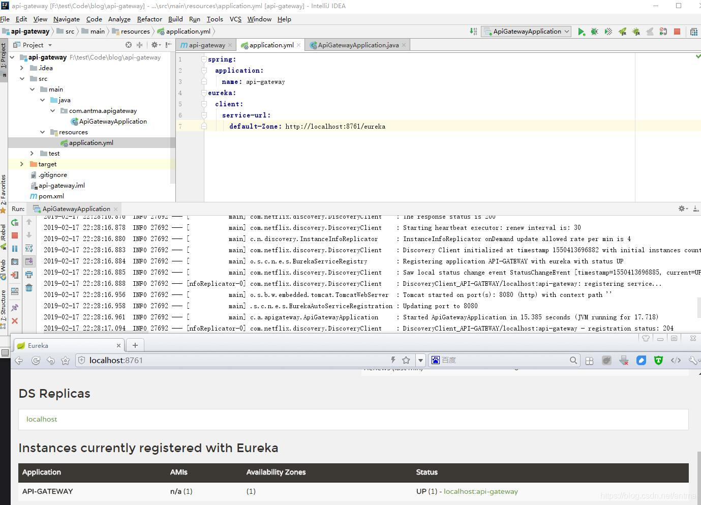 4、分别启动Eureka和api-gateway成功后,可以看到api-geteway 已注册到Eureka: