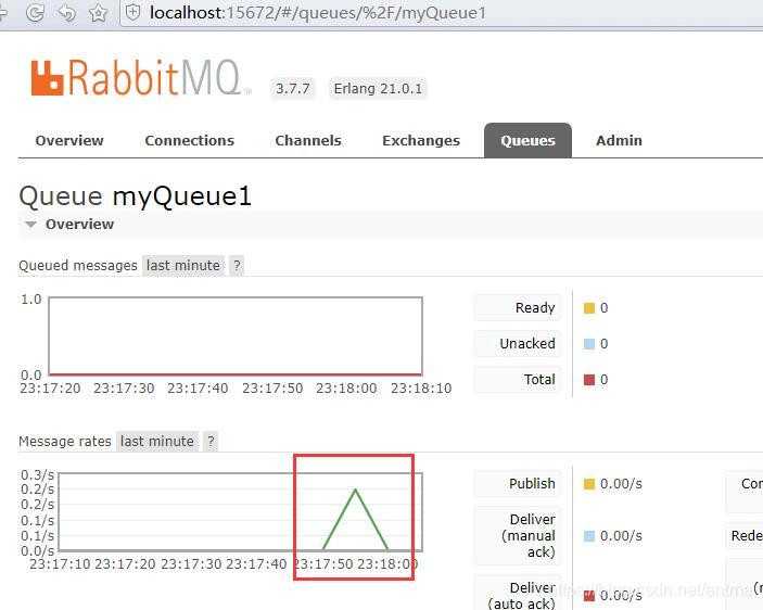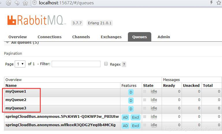6、启动spring boot 项目,在RabbitMQ队列(Queues)中即可看到队列出现: